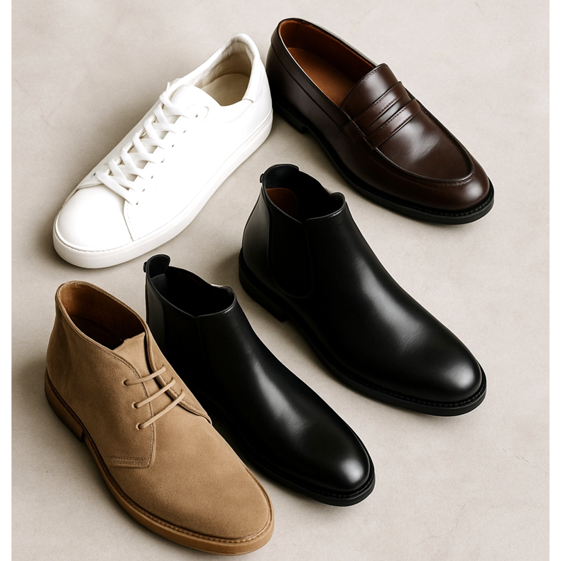 - Kaupunki: Mustat minimalistiset lenkkarit tai Chelsea-saappaat