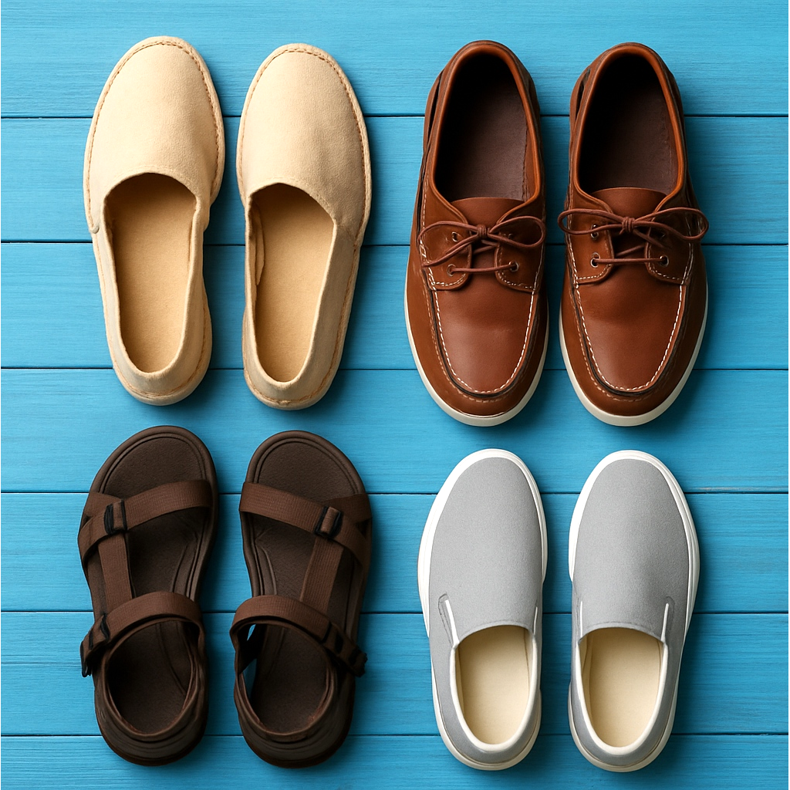- Kesä: Minimalistiset lenkkarit tai urheilusandaalit