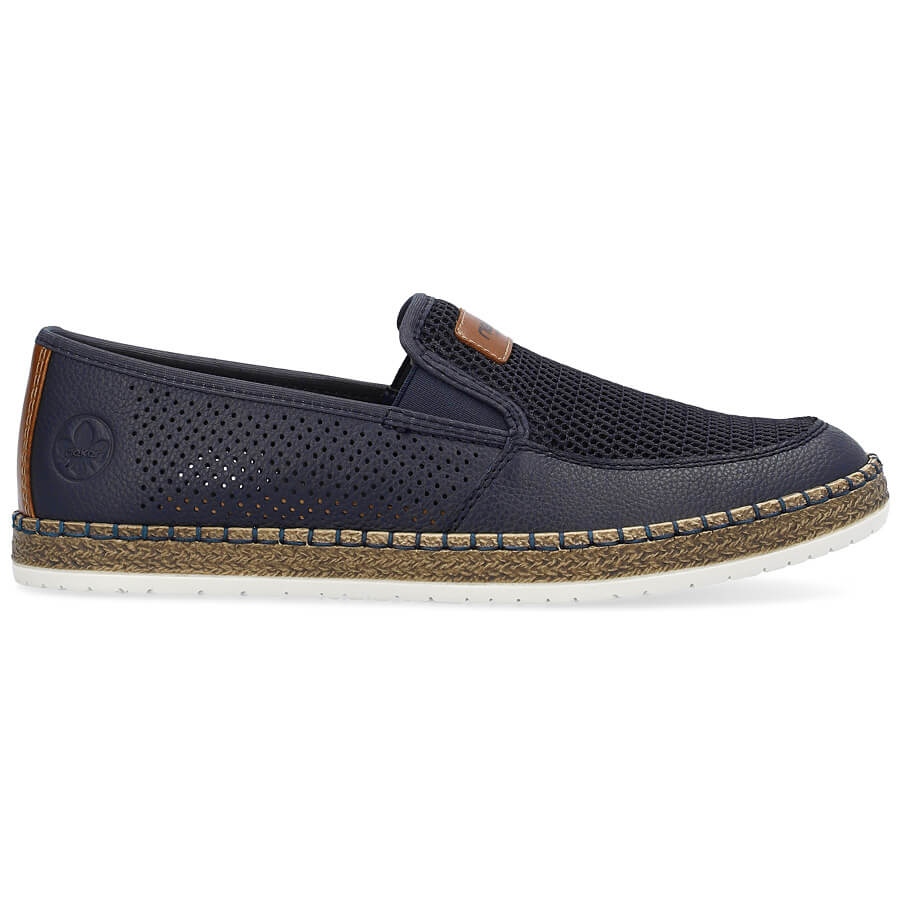 Löydä eleganssi ja mukavuus jokaisessa tilanteessa Rieker B5271-14 miesten puoliksi clut. Nämä avoimet ja asetetut kengät merivoimien sinisellä ovat täydellinen yhdistelmä tyyliä ja toiminnallisuutta. Laadukkaista materiaaleista valmistettu ne tarjoavat maksimaalisen mukavuuden nahkavuoren ja luonnollisen insertin ansiosta, joka saa jalat hengittämään.