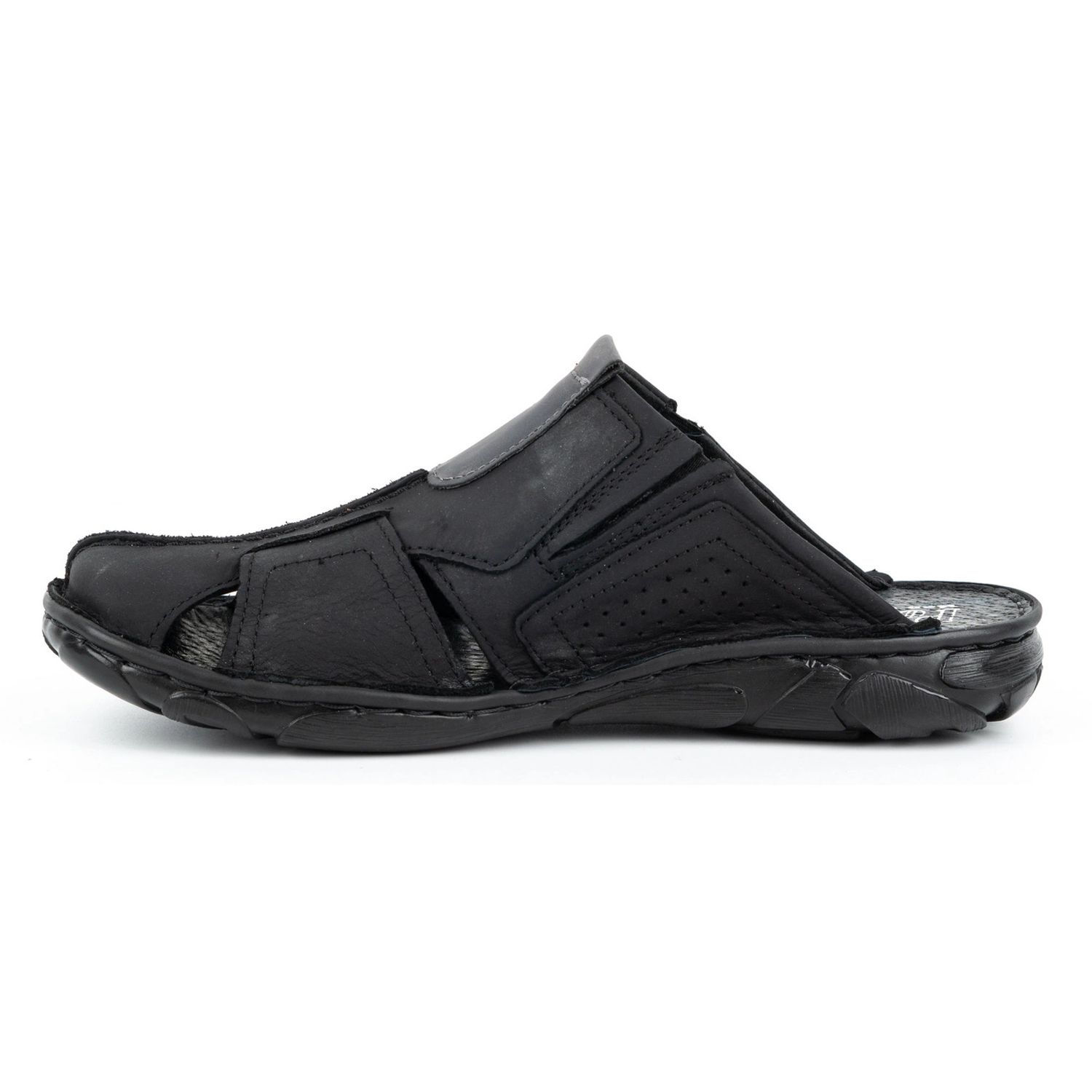Klassinen, urheilu miesten flip flops, jotka toimivat sekä lomalla että mukavina koti- tai viikonloppukenginä. Kaikki luonnon nahasta valmistettu - pehmeä, miellyttävä kosketussyöttö ja yläosa varmistavat mukavuuden myös paljain jaloin. Profiloitu insertti tukee jalkakaivoa, ja kevyt muotoilu tekee siitä käytännöllisen valinnan matkatavaroihin. Neutraali, musta väri sopii moniin tyyleihin, ja puolalainen tuotanto takaa huolellisen työn.