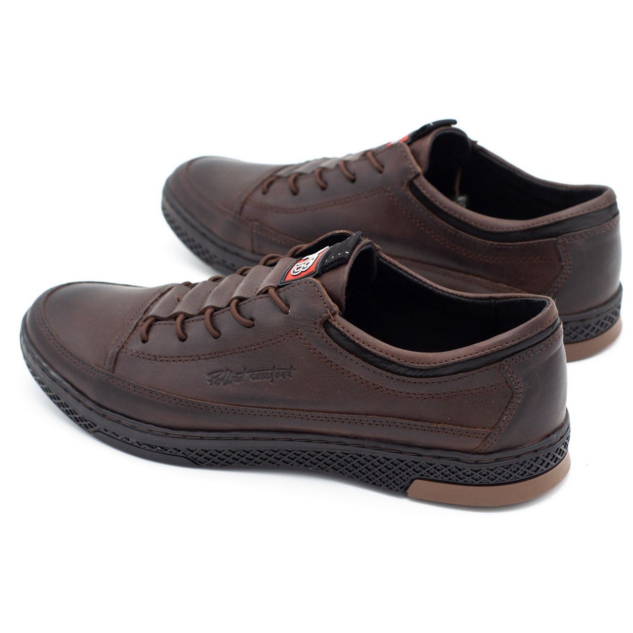 Yksityiskohdat: Polbut Miesten nahkaiset vapaa -ajan kengät K22 tummanruskea