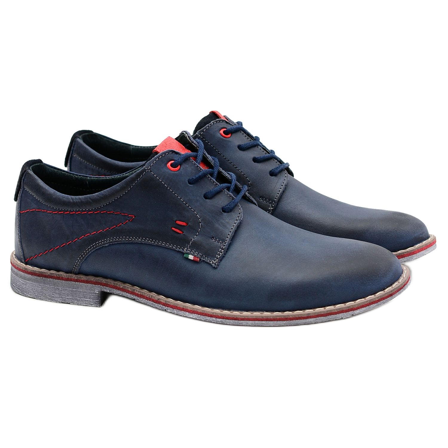 Tutustu klassikoihin modernissa versiossa kuuluisan KOMODO-brändin tummansinisten miesten nahkaisten Falado-kenkien kanssa. Näissä ainutlaatuisissa kengissä yhdistyvät uusimmat trendit ajattomaan tyyliin. Pyöristetty kärki ja perinteinen nyöritys tekevät niistä ihanteellisen valinnan sekä arkeen että vähemmän muodollisiin tilaisuuksiin. Punaiset tikkaukset lisäävät niihin luonnetta ja erottuvat muista malleista.