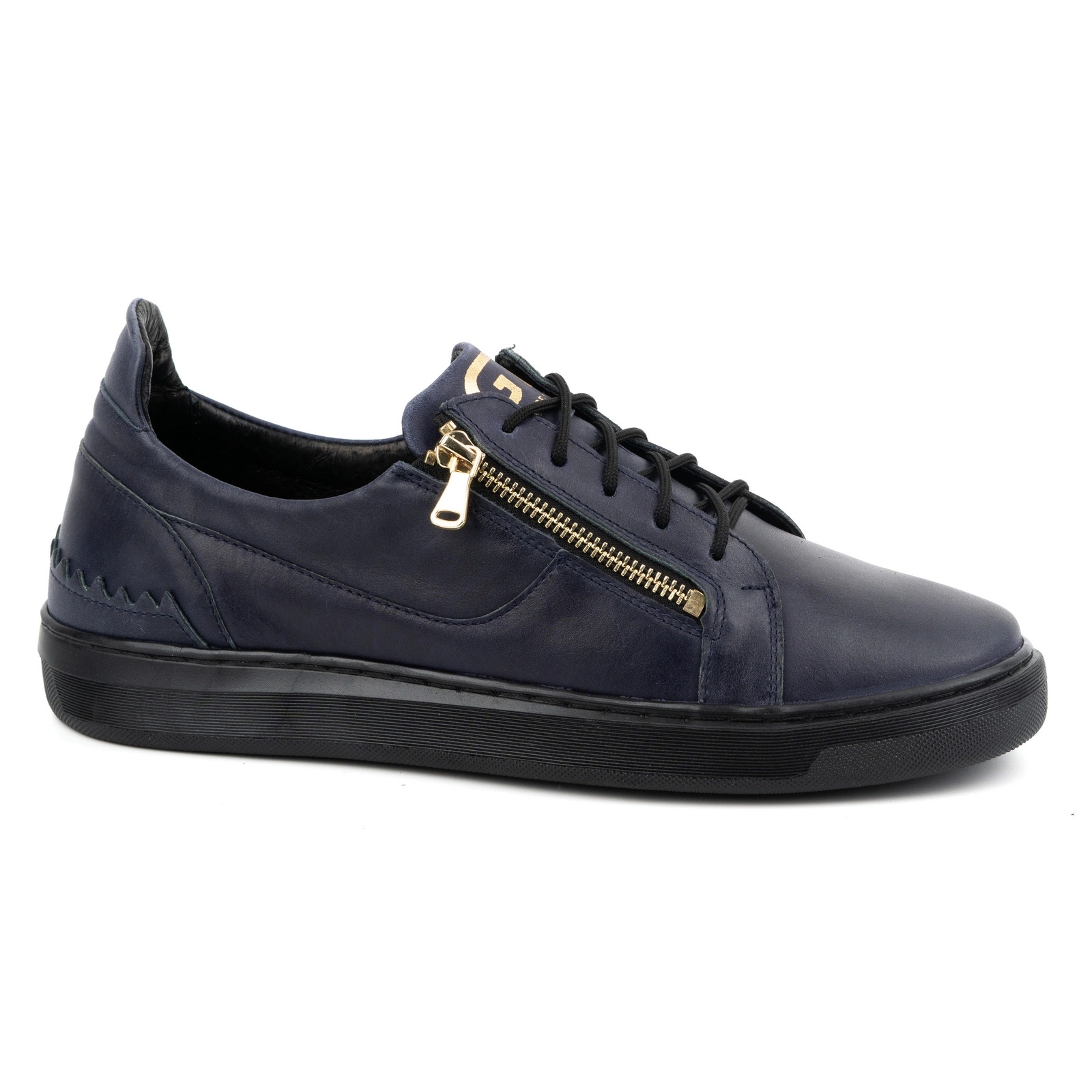 Polbut Miesten vapaa-ajan kengät luonnonnahasta POLBUT 2125, tummansininen