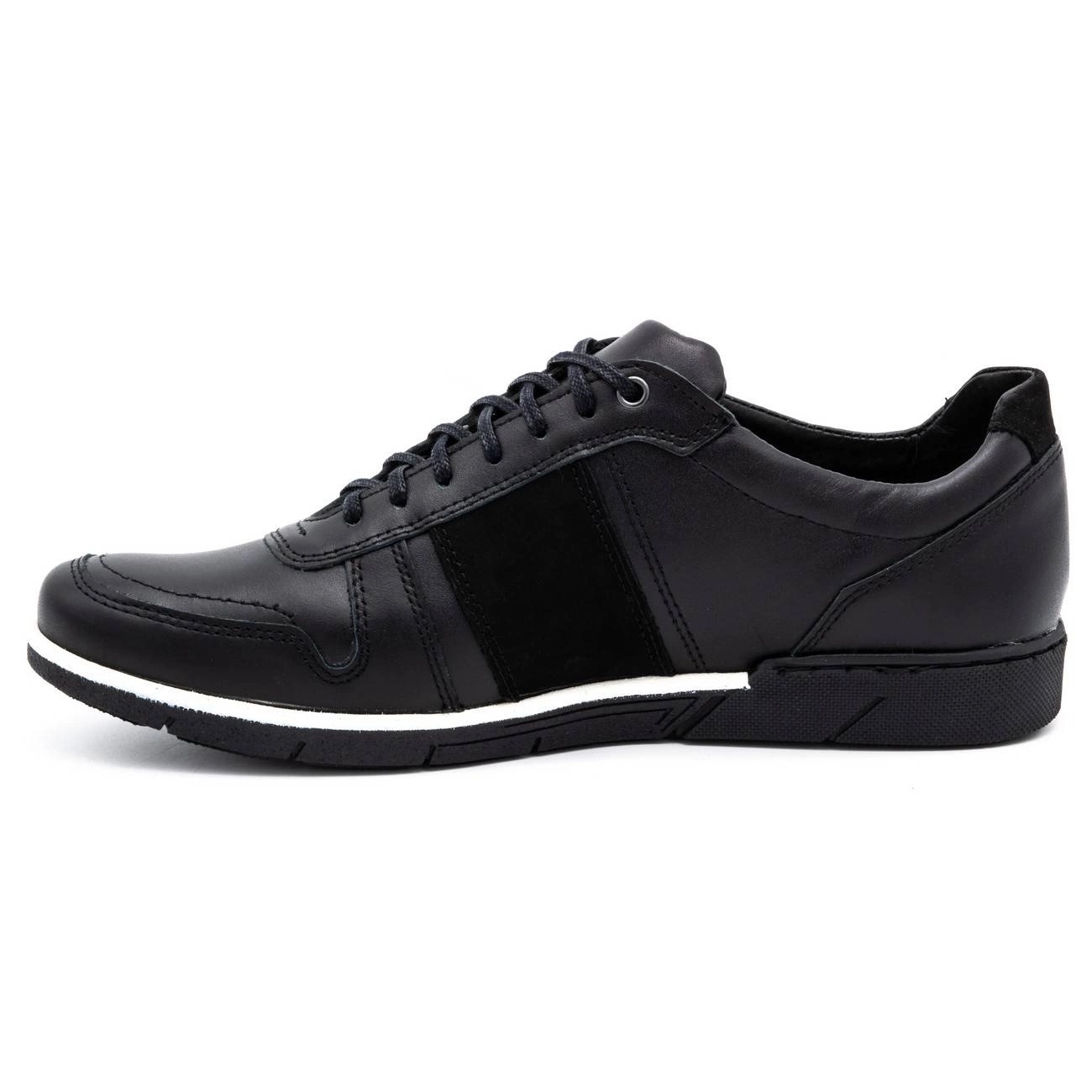 Tälle mallille on ominaista klassinen, urheilullinen muotoilu, ja pyöreä kärki ja nauhakiinnitys tekevät siitä modernin ja toimivan. Laadukkaasta synteettisestä materiaalista valmistettu pohja takaa erinomaisen pidon ja mukavuuden kävellessä. Sekä ommellun että liimatun rakenteen ansiosta kengät saavat lujuutta ja vakautta.