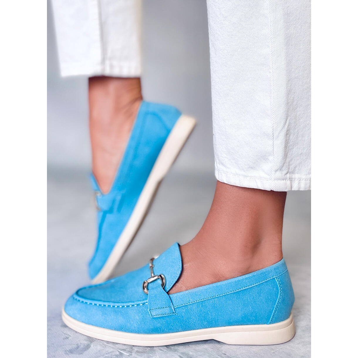 Löydä eleganssia ja mukavuutta Milva Blue -naisten mokassiineilla! Nämä klassiset kengät ovat täydellinen valinta jokapäiväiseen käyttöön yhdistäen ajattoman tyylin ja mukavuuden. Ne erottuvat muodikkaasta sinisestä väristään, mutta myös tyylikkäästä soljesta edessä, joka antaa niille ainutlaatuisen luonteen.