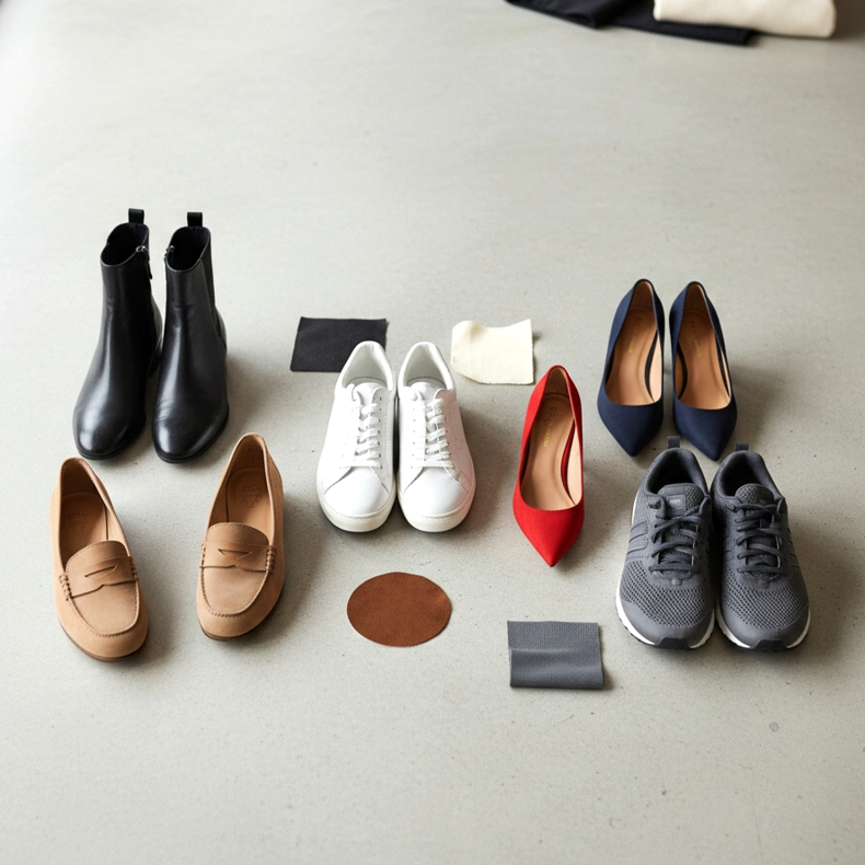 Yksi väriaksentti – jos pidät väreistä, salli itsellesi yksi pari erottuvassa sävyssä. Punaiset korkokengät, vihreät loaferit tai viininpunaiset nilkkurit voivat elävöittää neutraaleja tyylejä.