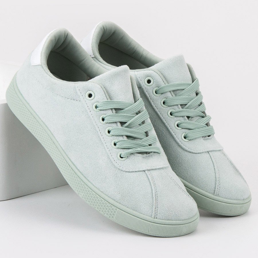Löydä mukavuuden ja tyylin uusi ulottuvuus Ideal Shoesin minttujen nauhakenkien avulla. Nämä tyylikkäät tennarit, jotka on valmistettu korkealaatuisesta mokkanahkaa jäljittelevästä materiaalista, yhdistävät muodikkaan muotoilun ja käyttömukavuuden ja ovat täydelliset jokapäiväiseen käyttöön. Litteän, 2 cm paksun kumipohjan ansiosta jalkasi tuntuvat kevyiltä ja rennolta tilaisuudesta riippumatta.