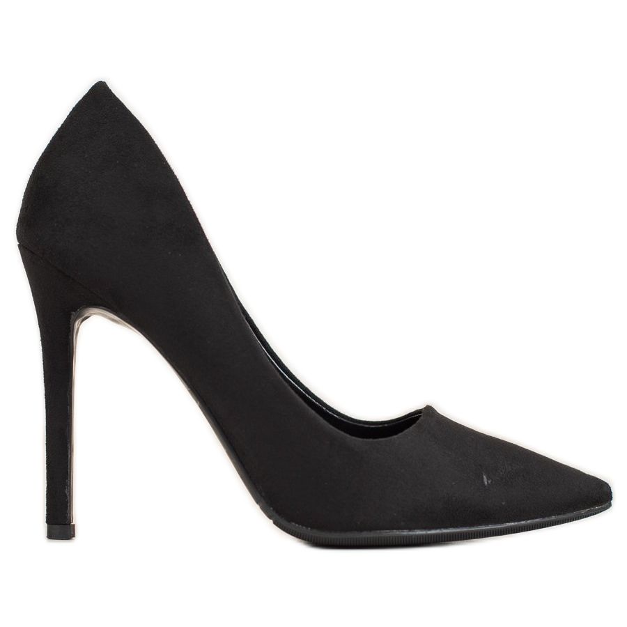 Nämä ovat Small Swan -valmistajan tyylikkäitä korkeakorkoisia pumppuja, jotka varmasti lisäävät eleganssia mihin tahansa tyyliin. Nämä laadukkaasta mokkanahkasta valmistetut klassisen mustan väriset kengät ovat täydellinen valinta niin iltaan kuin tyylikkäisiin juhliin.