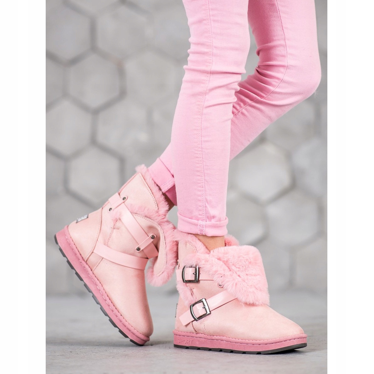Valmistettu ekologisesta mokkanahkasta miellyttävän vaaleanpunaisessa sävyssä, muklukit eivät vain näytä hyvältä, vaan myös varmistavat jalkojesi mukavuuden. Kengän sisäpuoli on vuorattu kankaalla ja eristetyllä kengänturkilla, mikä takaa erinomaisen lämmön ja pehmeyden käytössä. Lisäetuna on koristeellinen vaaleanpunainen turkki reunoilla ja koristeelliset soljet antavat olkaimet, jotka antavat niille ainutlaatuisen luonteen.