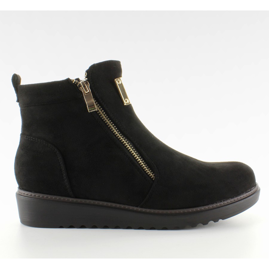 Mokkasaappaat kultalevyllä GG-32 Black - tyylikkäät ja mukavat naisten saappaat, täydelliset kylmempään päivään. Valmistettu ekologisesta mokkanahasta klassisen mustana, kielessä on katseenvangitsija kultalevy ja kultaiset vetoketjut, jotka lisäävät luonnetta ja hienovaraista kiiltoa.