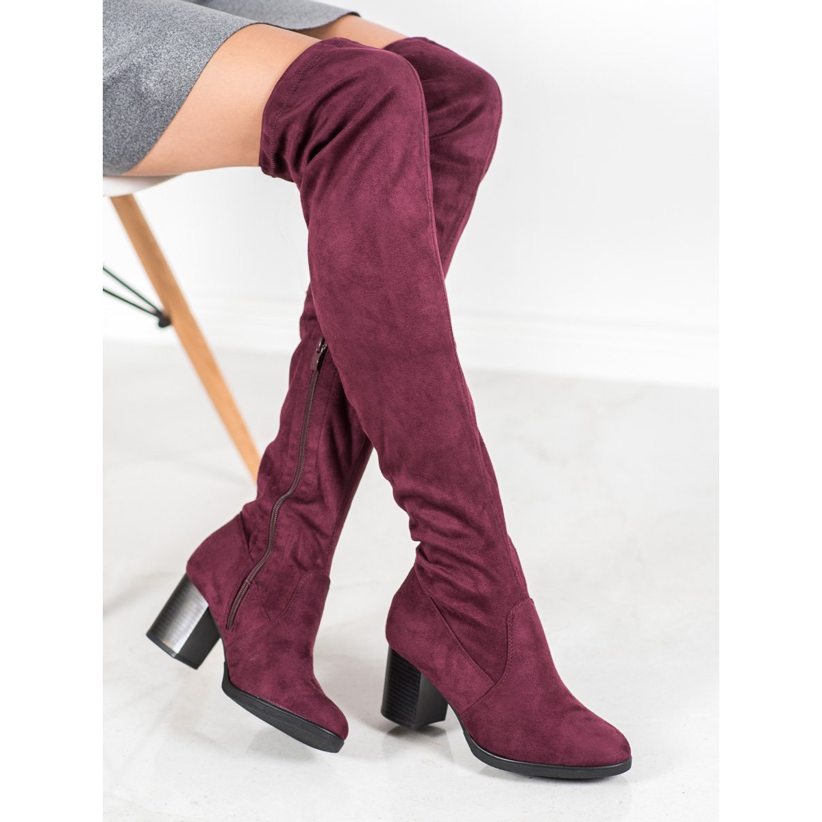 SHELOVET Suede Over-the-Knee Boots viininpunaiset ovat täydellinen valinta jokaiselle muodikkaalle naiselle, joka haluaa korostaa aistillisuuttaan ja eleganssiaan. Nämä muskettisoturit on valmistettu korkealaatuisesta mokkanahkasta ja ne tarjoavat paitsi tyyliä myös mukavuutta ja kestävyyttä. Saappaissa on pyöreä kärki, mikä tekee niistä mukavat käyttää myös pitkään.