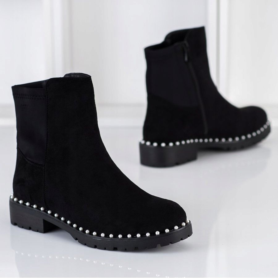 Mokkanahkaiset helminilkkurit valmistajalta Bestelle ovat jokaisen tyylikkään naisen syys- ja talvivaatekaappi. Nämä tyylikkäät nilkkurit klassisessa mustassa värissä on valmistettu korkealaatuisesta ekologisesta nahasta, joka jäljittelee mokkaa, mikä korostaa niiden ylellistä luonnetta.