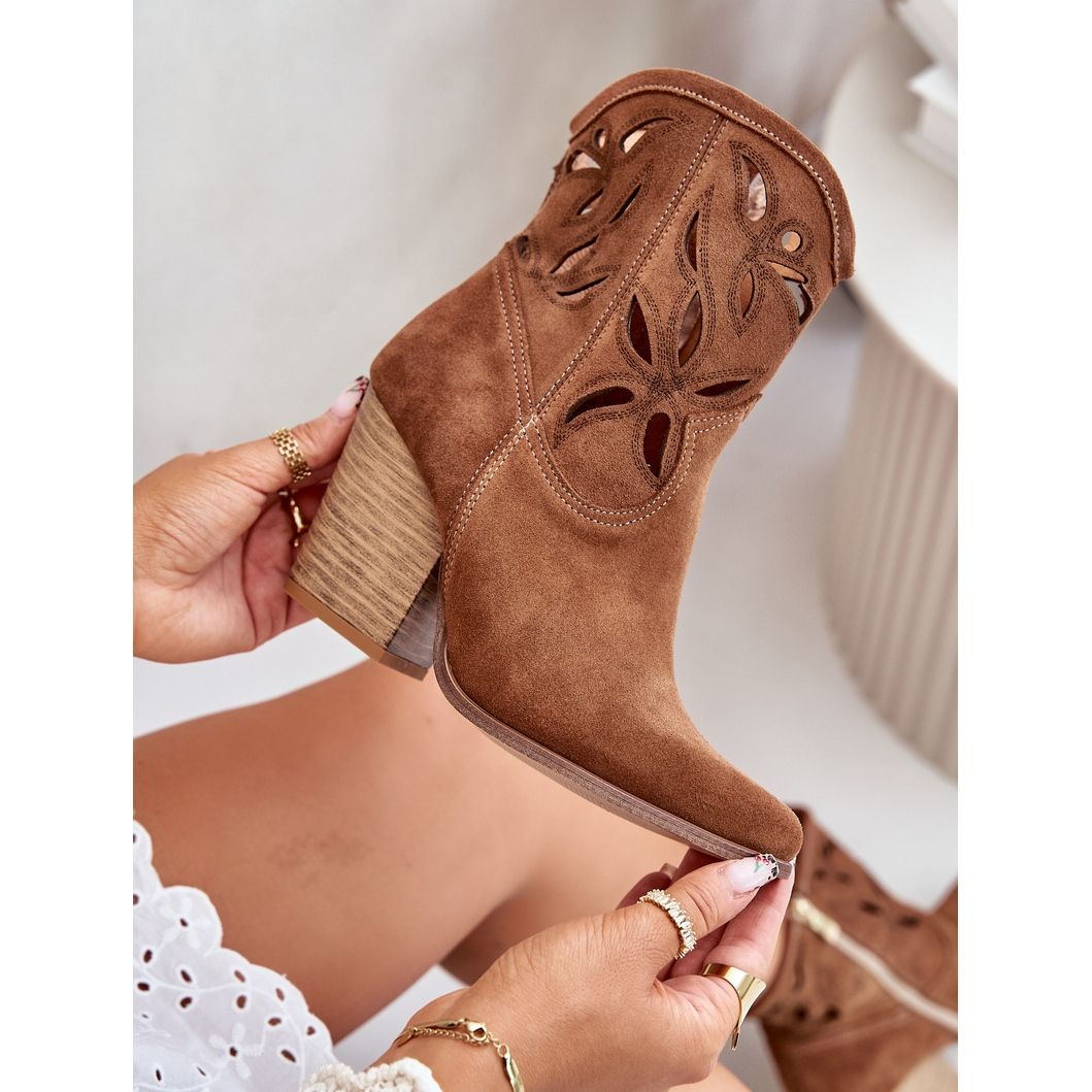 Yksityiskohdat: Lewski Shoes Mokkanahkaiset cowboysaappaat, joissa harjakattoinen kuvio Lewski 3612 Ruskea beige