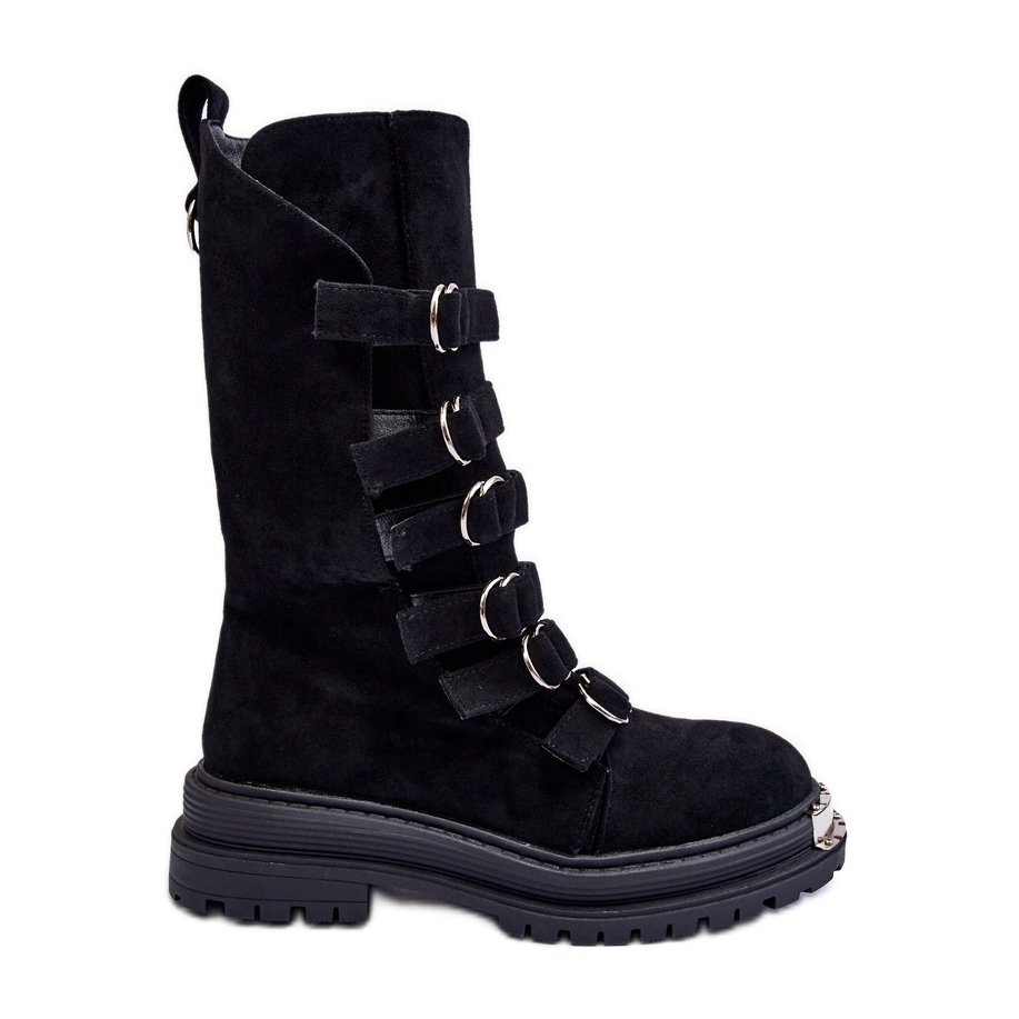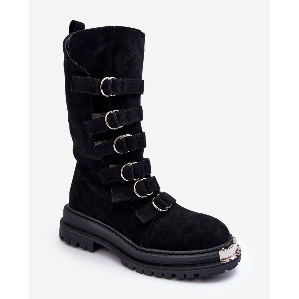 Mokkanahkaiset saappaat työntekijät, joilla on raitoja - musta Elnatea