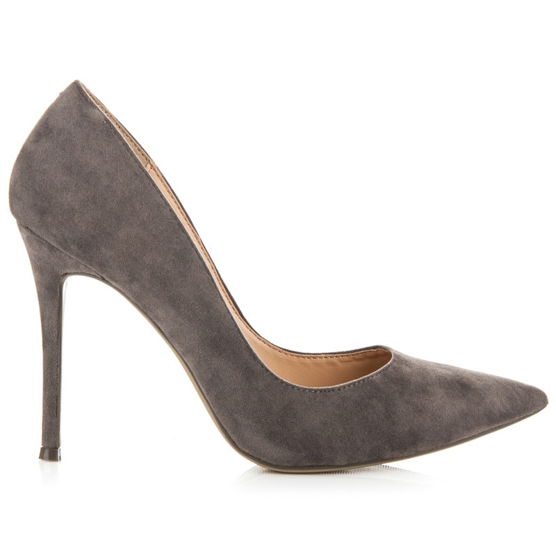 Löydä Vicesin harmaiden mokkanahkaisten korkokenkien eleganssi ja mukavuus. Nämä tyylikkäät pumput on valmistettu ympäristöystävällisestä mokkanahkasta, mikä tekee niistä sekä ympäristöystävällisiä että visuaalisesti houkuttelevia. Niiden klassinen, terävä kärki ja rakennettu, jäykistetty kantapää lisäävät eleganssia ja täydellisesti profiloidut 10,5 cm:n kantapäät takaavat käyttömukavuuden myös pitkiä aikoja käytettäessä.