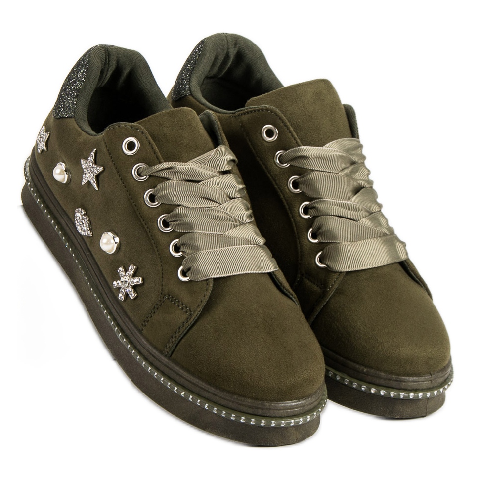 Esittelemme muodikkaat lenkkarit, joissa on strassit, jotka valloittavat ainutlaatuisuudellaan ja huomiolla yksityiskohtiin. Ekologisesta mokkanahkasta valmistetut ne tarjoavat paitsi upean ulkonäön, myös käyttömukavuuden. Vihreän värin ansiosta ne sopivat täydellisesti tulevan kevät/kesäkauden trendeihin, ja samalla ne sopivat täydellisesti myös kylmimpiin kuukausiin.
