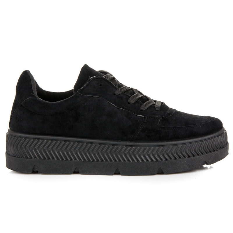 Yksityiskohdat: Mokkanahkaiset tennarit alustalla musta