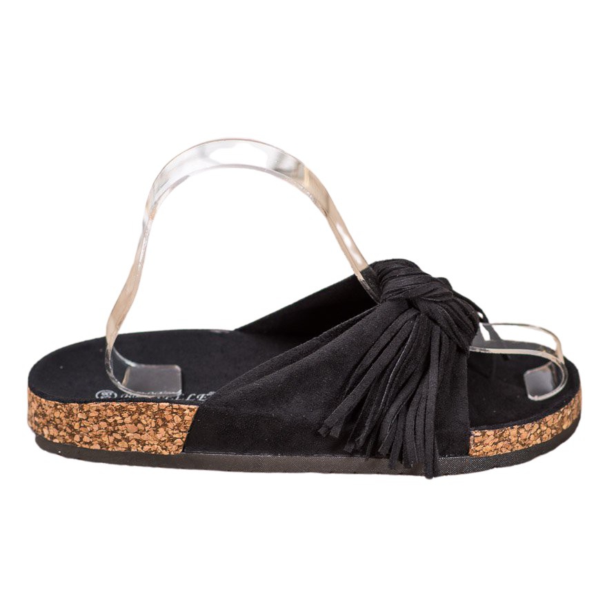 Valmistetut ekologisesta mokkaa jäljittelevästä nahasta, varvastossut ovat poikkeuksellisen pehmeitä ja miellyttäviä käyttää. Avoin kantapää ja slip-on muoto tekevät niistä helppo pukea ja riisua, mikä on erittäin käytännöllistä lämpiminä kevät- ja kesäpäivinä. Näiden varvastossojen lisäetuna ovat koristeelliset hapsut, jotka tekevät niistä houkuttelevia ja raikkaita.