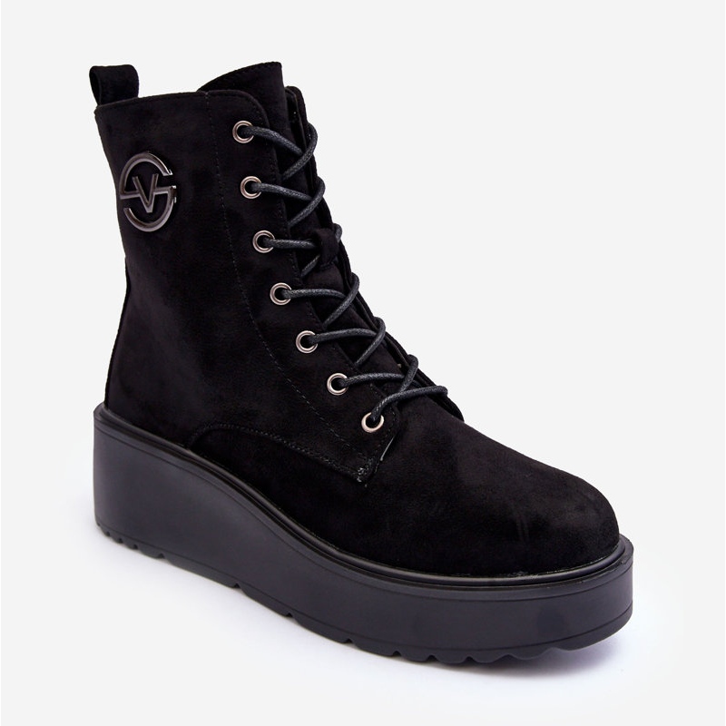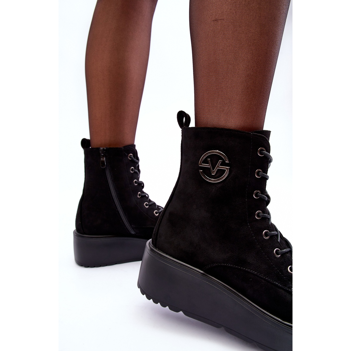 Yksityiskohdat: Vinceza Mokkanahkaiset työntekijänilkkurit massiivisella alustalla Wedge Black Lavica musta