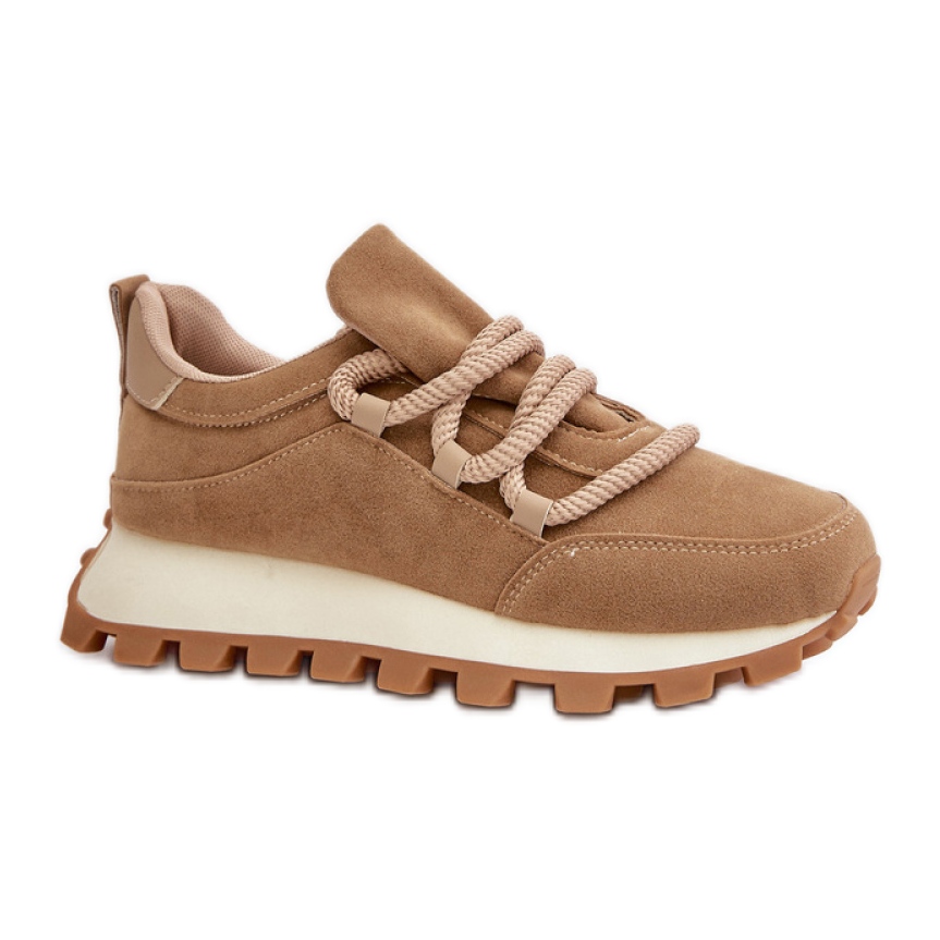 Löydä ainutlaatuinen malli ruskeista mokkanahkaisista urheilukengistä, joissa on paksu sidonta, joka yhdistää mukavuuden ja modernin tyylin. Nämä tyylikkäät naisten lenkkarit, jotka on valmistettu ekologisesta mokkanasta, ovat ihanteellinen ehdotus kaikille naisille, jotka arvostavat mukavuutta ja muodikkaita ulkonäköä.