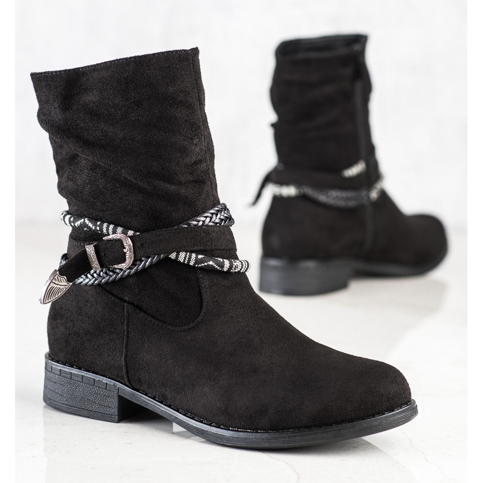 Esittelyssä Anesia Paris Suede -nilkkurit koristeellisilla hihnoilla - täydellinen valinta syys-/talvikauteen! Nämä tyylikkäät mustat saappaat ovat täydellinen yhdistelmä tyyliä ja mukavuutta, jotka varmasti täydentävät mitä tahansa rentoa tyyliä.