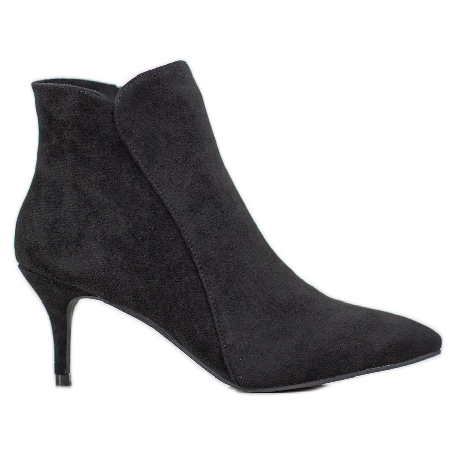 Löydä eleganssia ja tyyliä Kylien mustilla mokkanahkaisilla korkeakorkoisilla nilkkureilla. Nämä ohuet naisten nilkkurit täydentävät täydellisesti monia jokapäiväisiä ja ainutlaatuisia tyylejä. Valmistettu korkealaatuisesta ekologisesta nahasta, jossa on mokkaviimeistely, ne tarjoavat paitsi muodikkaan ulkonäön myös käyttömukavuuden.