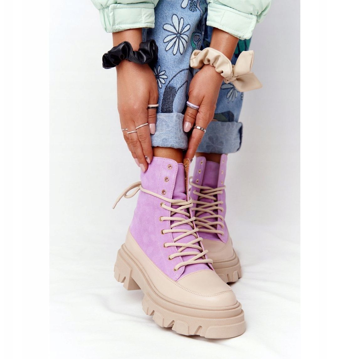 Yläkorkeus 15 cm tukee riittävästi nilkkaa, ja ainutlaatuinen violetin ja beigen värien yhdistelmä tekee näistä saappaista erottuvan elementin vaatekaappiisi. Huomaa, että numerointi on liioiteltu, joten on suositeltavaa valita pienempi koko.