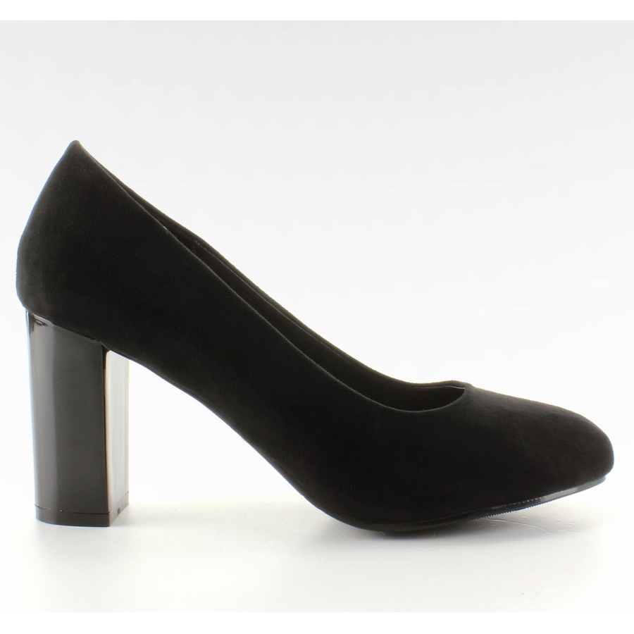 Musta M265 Mustat ekologisesta mokkanahkapumput yhdistävät naisellisen eleganssin ja mukavuuden. Vakaa, kiiltävä, noin 9 cm korkea kantapää takaa mukavan käytön ja varman askeleen, ja klassinen pyöreä kärki tekee kengistä äärimmäisen universaaleja.