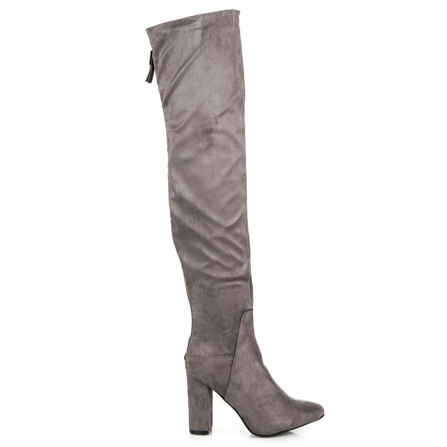 Kengät on valmistettu korkealaatuisesta ekologisesta mokkanahkasta, joka takaa käyttömukavuuden ja kestävyyden. Vakaa 10 cm korkea kantapää ja sileä synteettinen pohja takaavat mukavuuden ja samalla muotoilevat vartaloa optimaalisesti, hoikentaen jalkoja ja korostaen niiden etuja. Polven yläpuolelle ulottuva korkea päällinen lisää luonnetta ja eleganssia, ja mantelivarvas tuo hienovaraisen aavistus klassisuutta.