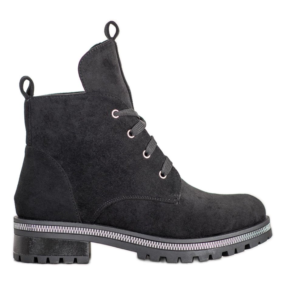 Nämä vaelluskengät on valmistettu laadukkaasta ekologisesta mokkanahkasta, mikä antaa niille ylellisen luonteen sekä kuvion puuttumisen, mikä tekee niistä täydellisesti sopivan klassiseen casual-tyyliin. Niiden universaali musta väri tekee niistä sopivan moniin eri tyyleihin - täydellisesti farkkuihin, mekoihin sekä tyylikkäämpiin asuihin kylmimpiin päiviin.