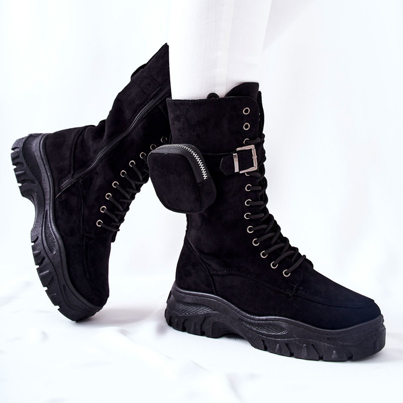 **Mokkanahkaa saappaat, joissa vyötärönauha, musta Issanti**