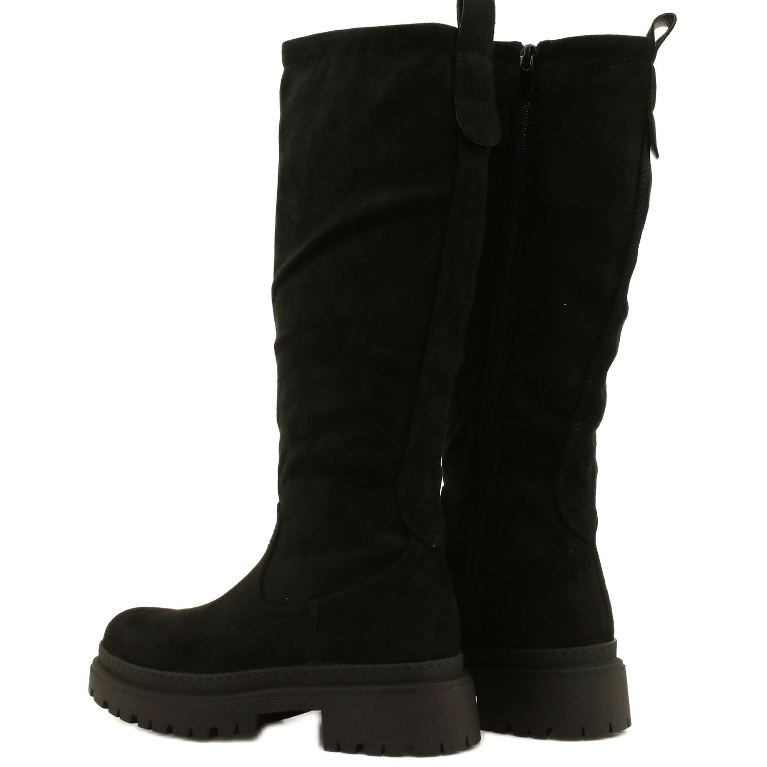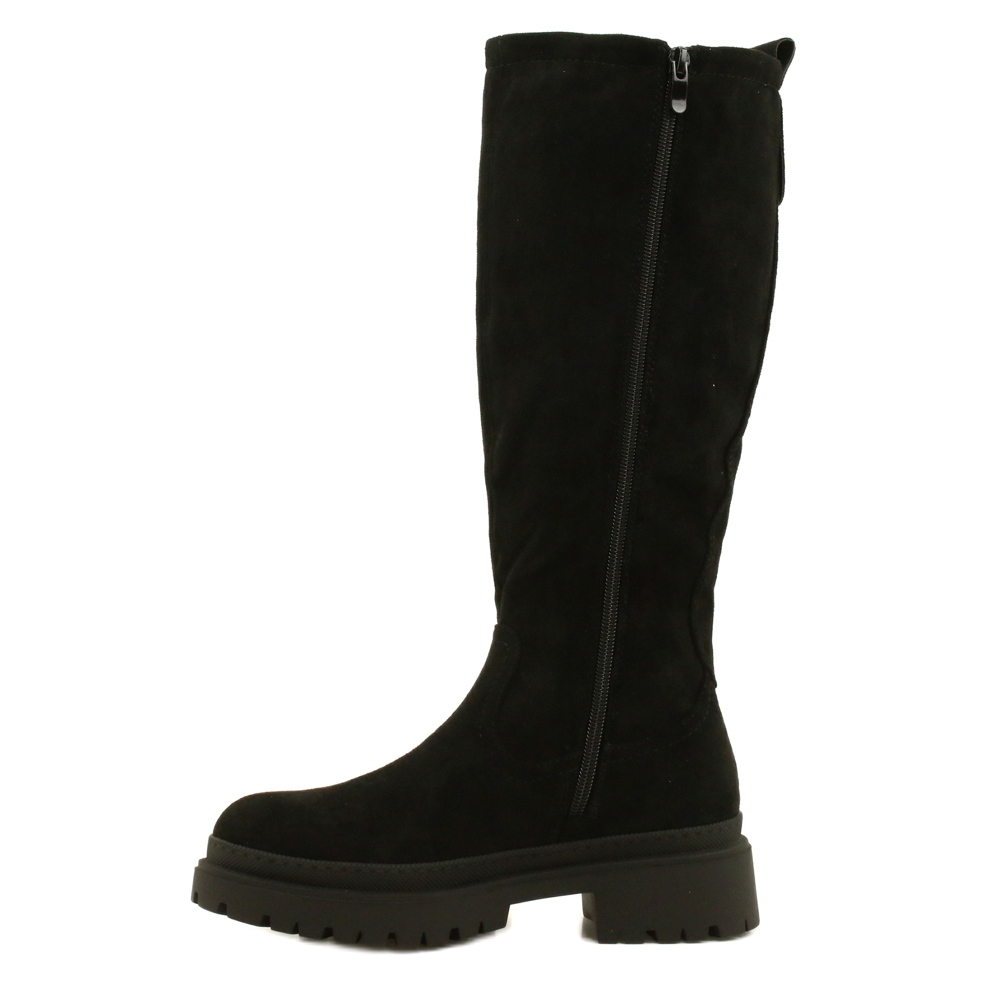 Evento mokkanahka saappaat paksulla pohjalla 22 kz35-5223-eleganssi ja mukavuus talveksi. Ekologisesta mokkanahasta valmistetut klassiset mustat saappaat yhdistävät naisten leikkauksen käytännöllisillä liuoksilla: turkiseristys tarjoaa lämmön mukavuutta ja ilmankiertoa ja paksu pohja 4 cm korkealla isolaatilla kylmästä ja lisää muutaman senttimetrin korkeuden. Litteä kantapää ja pyöreä nenätakaavat vakauden ja mukavuuden päivittäisen kulumisen aikana, ja lukko helpottaa laittaa ja ottaa pois.