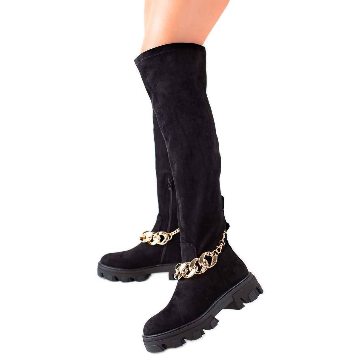Diamantique Suede E -saappaat, joissa on kultaketju, ovat syys/talvikauden ehdoton hankinta, jotka sopivat täydellisesti sekä mekkojen että housujen kanssa. Jokaisella naisella, joka haluaa näyttää muodikkaalta ja tuntea olonsa mukavaksi, pitäisi olla ne mallistossaan! Tuote toimitetaan valmistajan alkuperäisessä laatikossa, mikä tekee siitä myös loistavan lahjaidean.