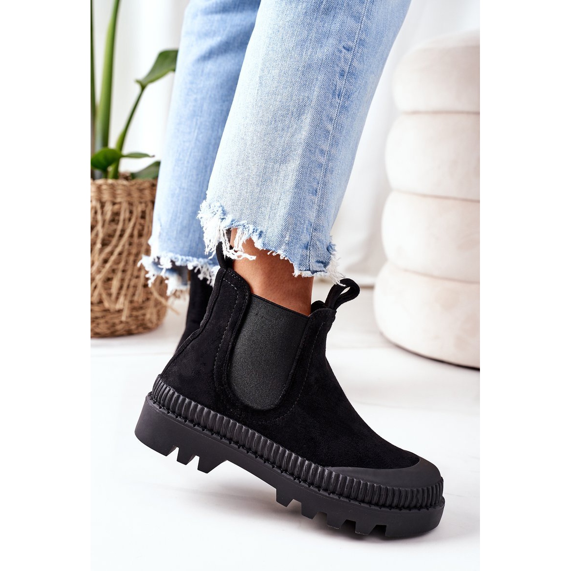 Nämä mustat nilkkurit on suunniteltu moderneille naisille, jotka arvostavat tyyliä mutta myös mukavuutta. Synteettisestä materiaalista valmistettu pohjallinen ja kangaspohjallinen takaavat kestävyyden ja käyttömukavuuden. Yläkorkeus 12,5 cm korostaa tehokkaasti jalkoja, ja minimalistinen muotoilu antaa monia muotoilumahdollisuuksia.