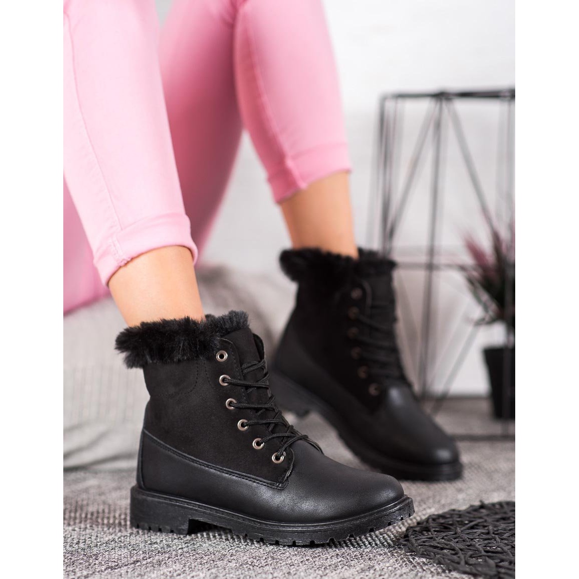 SHELOVET-saappaat ovat täydellisiä jalkineita kylmimpiin päiviin yhdistäen tyylin ja mukavuuden. Valmistettu laadukkaasta nahkamaisesta materiaalista ja ekologisesta mokkanahasta, ne näyttävät erittäin tyylikkäiltä, ja musta väri tekee niistä sopivan melkein mihin tahansa tyyliin.