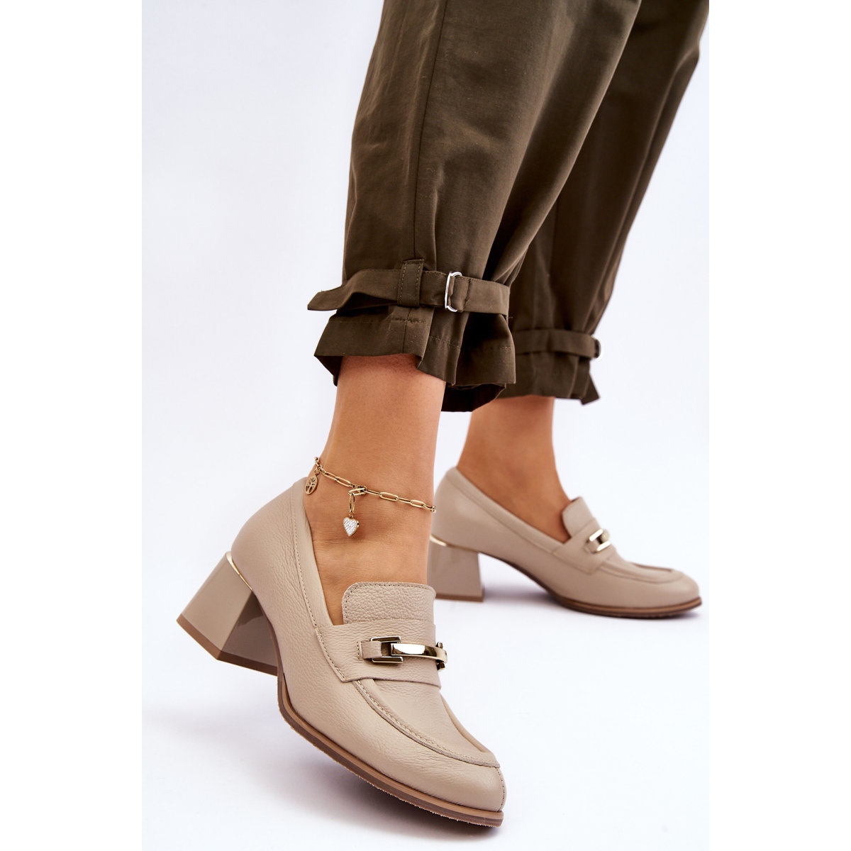 Lemar mukavat nahkapumput Damira - beige, tyylikäs ja erittäin mukava. Valmistettu luonnollisesta nahasta (ulko- ja insertit), upotettu vakaalle, 5,5 cm: n korkealle kantapäähän, varmista mukavuus jopa kaikkien päiväpäivän käytön aikana. Pyöreä nenä, jäykistetty kantapää ja pehmeä nahkapohja varmistavat jalan oikean tuen, ja strassin hienovarainen sisustus lisää luokkaa ja tyyliä. Laitetulla malli - Nopea perustamiseen, hyvä työhön, perhejuhlia tai tärkeitä kokouksia varten.