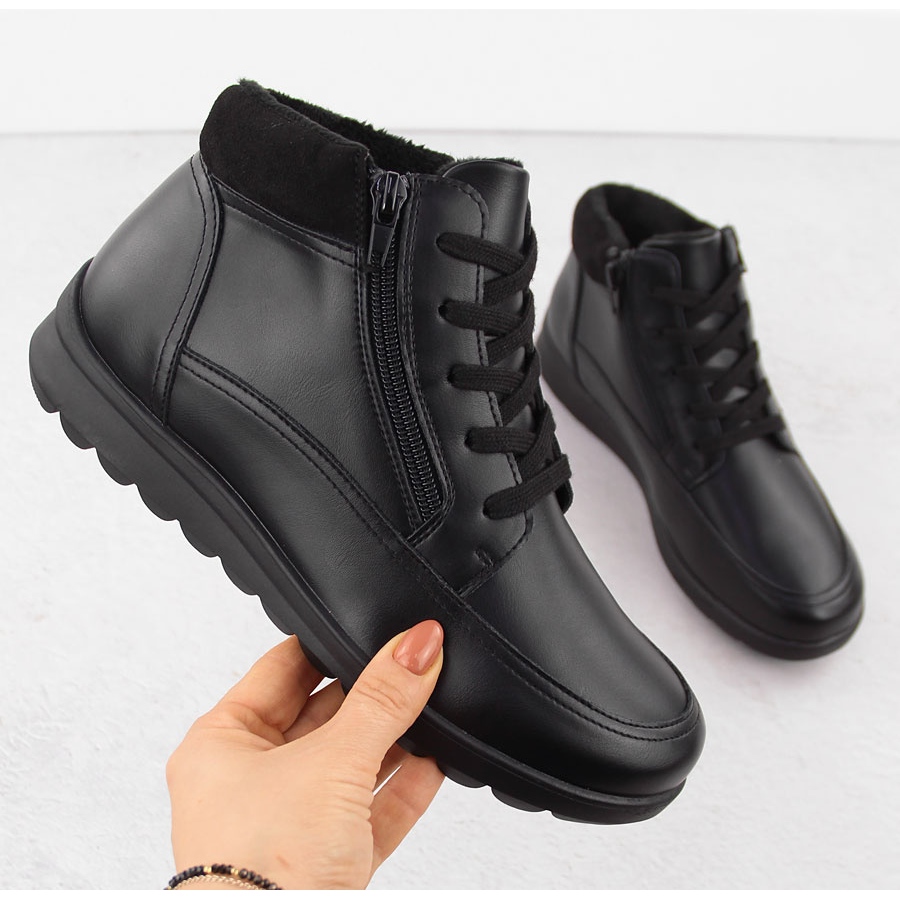 Saappaat on eristetty herkällä kankaalla, joka jäljittelee turkista, mikä tekee niistä loistavan valinnan kylmiksi päiviin. Kahden liukusäätimen ansiosta kengän asettaminen tulee helpommaksi ja helpommaksi, ja pyöreä nenä lisää klassisen hahmon. Litteä kantapää, jonka korkeus on 2 cm, takaa kulumisen mukavuuden, ja nilkan yläosaan 10 cm korkeus tarjoaa riittävän tuen jalkalle.