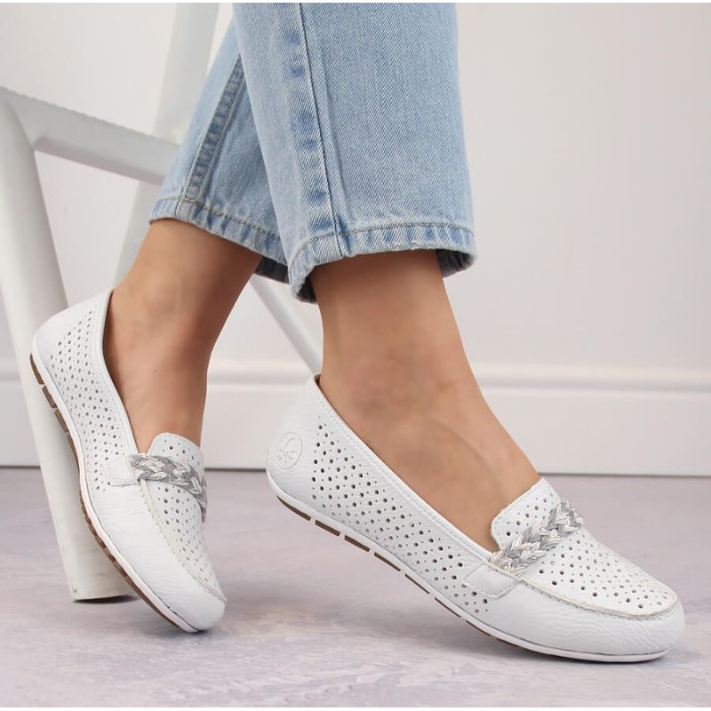 Esittelemme mukavia Rieker -aukiolojen kenkiä RKR661: ssä tyylikkäässä valkoisessa värissä, mikä on täydellinen valinta jokaiselle muodikkaalle naiselle. Tämä matala jalkineiden malli yhdistää sekä tyylin että toiminnallisuuden, jonka ansiosta se on täydellinen erilaisissa tilanteissa.