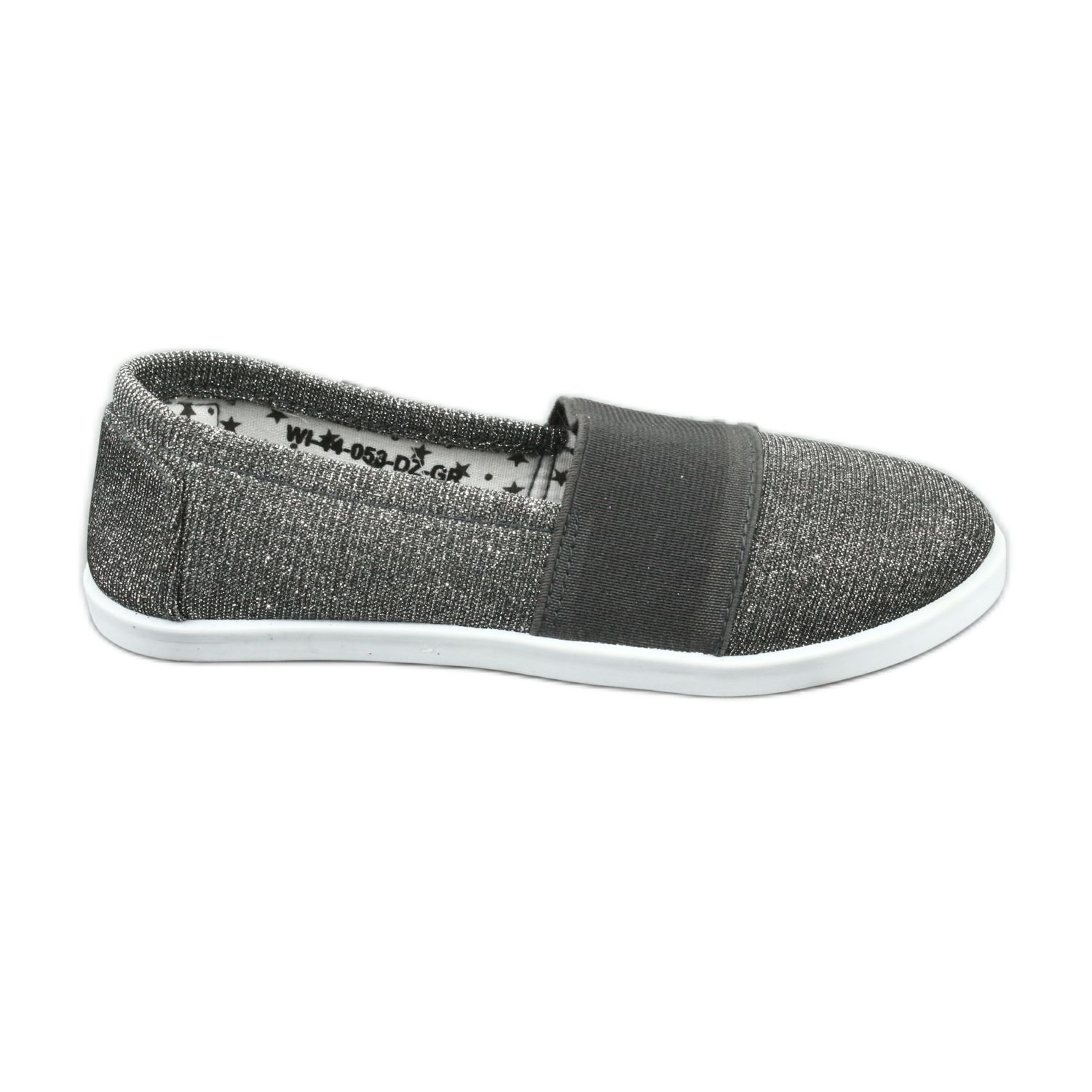 Tyylikkät ja käytännölliset lenkkarit-ballerinat Wishotin tytöille. Valmistettu korkealaatuisesta tekstiilimateriaalista hopeisella, hienovaraisella kiiltolla. Pehmeällä kankaalla vuorattu kengän sisäosa, joka varmistaa mukavuuden käyttää koko päivän. Valkoinen, erittäin joustava kumipohja takaa hyvän tarttuvuuden ja liikkumisvapauden pelaamisen aikana. Tiukka ikenen kiinnitys on helpompaa laittaa nopeasti ja sovittaa jalkasi jalkaan.