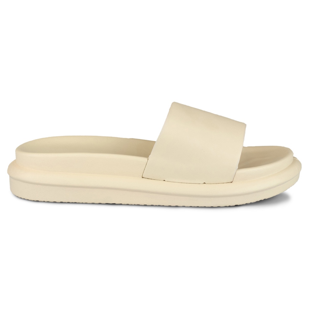 Tälle mallille on ominaista käytännöllinen slip-on-kiinnitys, joka helpottaa läppien pukemista ja irrottamista. Niissä on avoin varvas, joka tarjoaa erinomaisen ilmanvaihdon ja mukavuuden erityisesti lämpiminä päivinä. Lisäetuna on 4 cm korkea alusta, joka tarjoaa lisämukavuutta kävellessä ja samalla lisää hieman korkeutta.