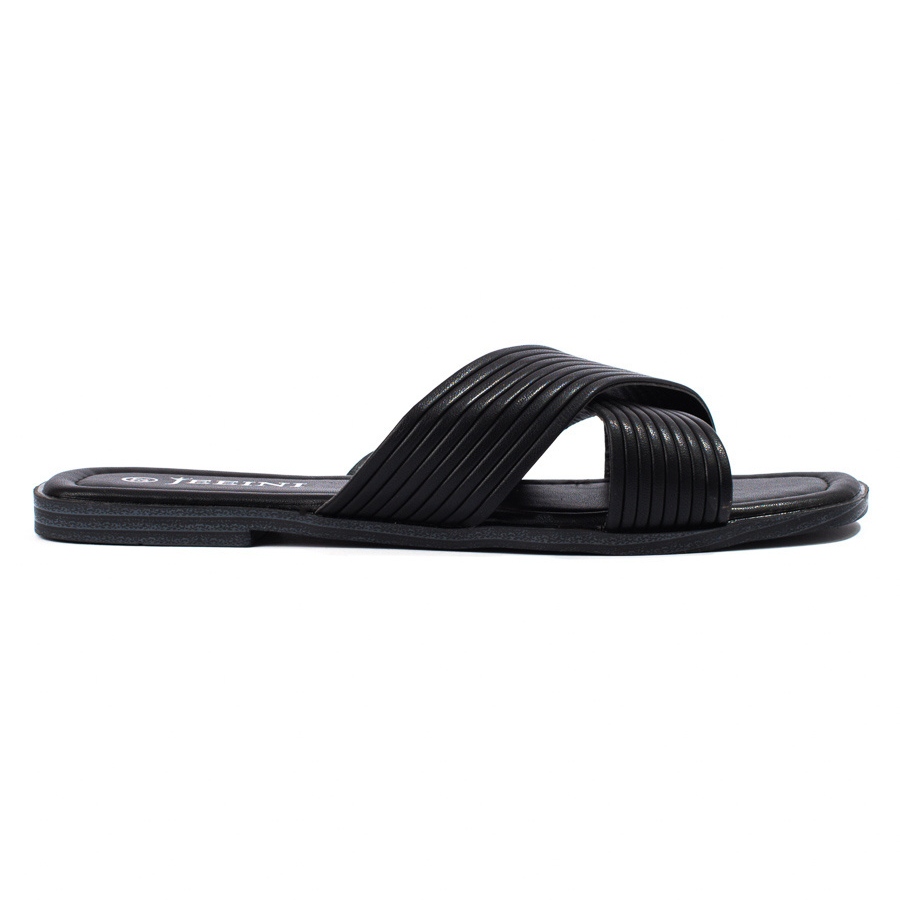 TRENDI varvastossuissa yhdistyvät klassinen tyyli ja moderni lähestymistapa muotiin. Niiden minimalistinen muotoilu ilman kuvioita ja universaali musta väri tekevät niistä täydellisen yhdistelmän moniin arkisarjoihin. 1 cm:n korkeus tekee niistä paitsi tyylikkäitä, myös mukavia koko päivän.
