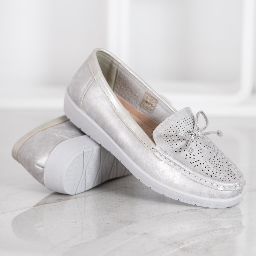 Hopeanharmaat SHELOVET-loaferit ovat jokaisen naisen kevät-kesävaatekaappi. Niiden tyylikäs, harjakattoinen muotoilu tekee niistä täydellisesti sekä rento tyylien että hienostuneempien asujen kanssa.