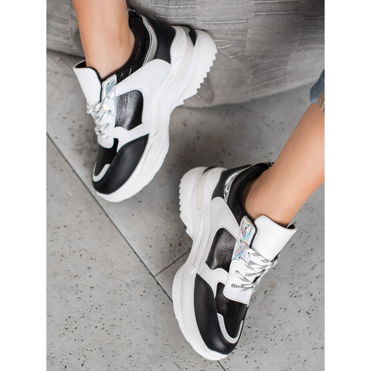 Yksityiskohdat: SHELOVET Mukavat lenkkarit lavalla valkoinen musta
