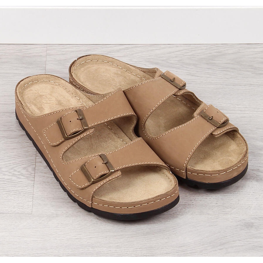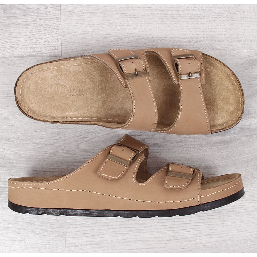Yksityiskohdat: Mukavat miesten nahkatossut beige Helios 813