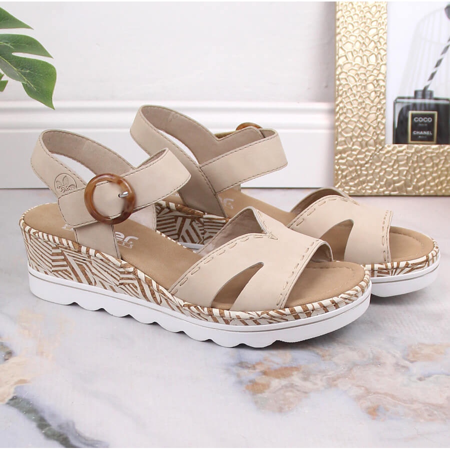Yksityiskohdat: Mukavat naisten kiila sandaalit beige Rieker 67173-60