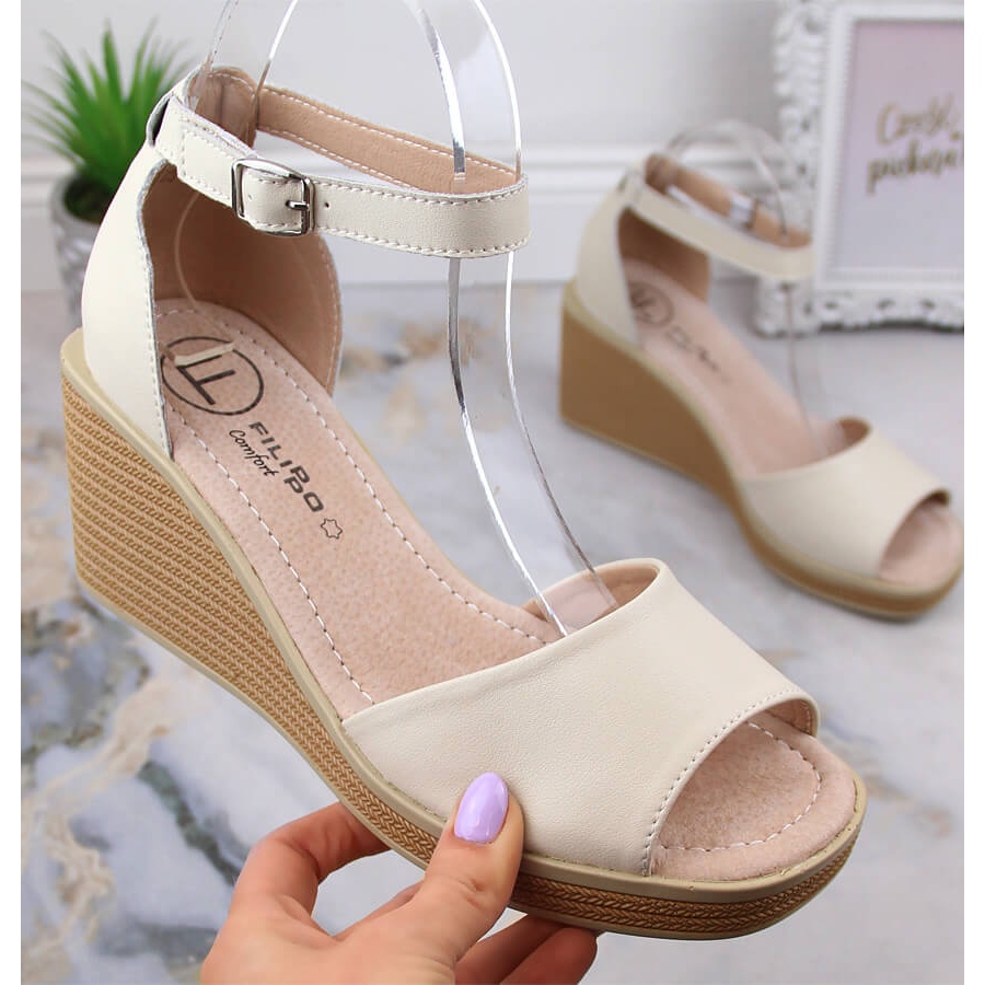 Yksityiskohdat: Mukavat naisten nahkaiset kiila sandaalit Filippo DS4507 beige