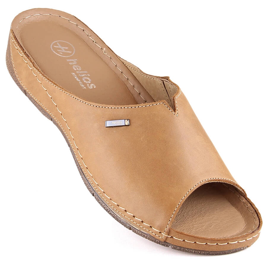 Helios Mukavat naisten nahkatossut kuminauhalla vaaleanruskea Helios 105 beige
