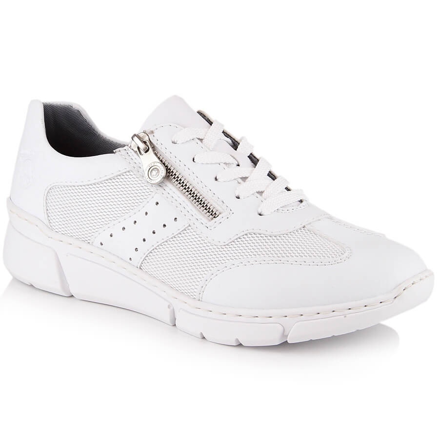 Yksityiskohdat: Mukavat naisten urheilukengät valkoiset Rieker M0100-80 valkoinen