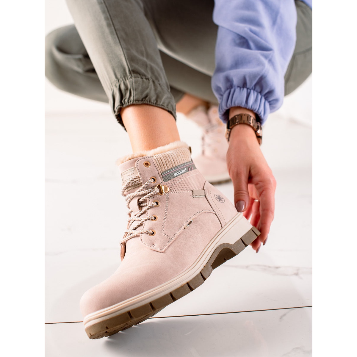 Tutustu valmistajan Goodinin ainutlaatuisiin vaelluskenkiin, joissa yhdistyvät urheilullinen tyyli ja arjen mukavuus. Nämä vaaleanpunaiset naisten nilkkurit ovat täydellinen ratkaisu syksyyn ja talveen, täydelliset kaikkiin kaupunkiseikkailuihin.