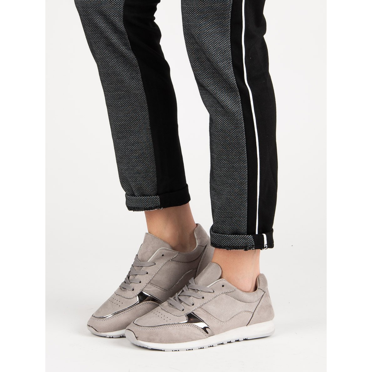 Löydä mukavuus ja tyyli Jumex-urheilukengillä tyylikkäässä harmaan sävyssä. Nämä ainutlaatuiset naisten kengät, jotka on valmistettu ekologisesta mokkanahkasta, yhdistävät täydellisesti urheilullisuuden luokkaan, mikä tekee niistä ihanteellisen valinnan niin arkeen kuin muodollisempiin tilaisuuksiin. Kiiltävä sovellus antaa niille ainutlaatuisen viehätyksen, jolloin voit tuntea olosi erityiseksi ja erottua joukosta.